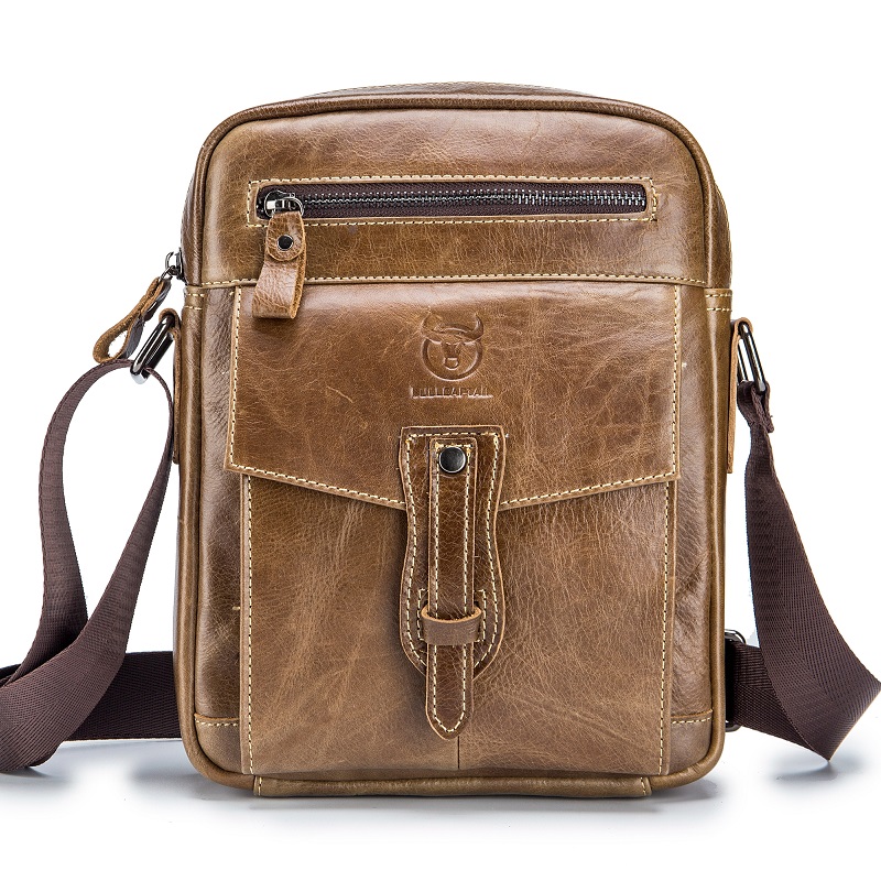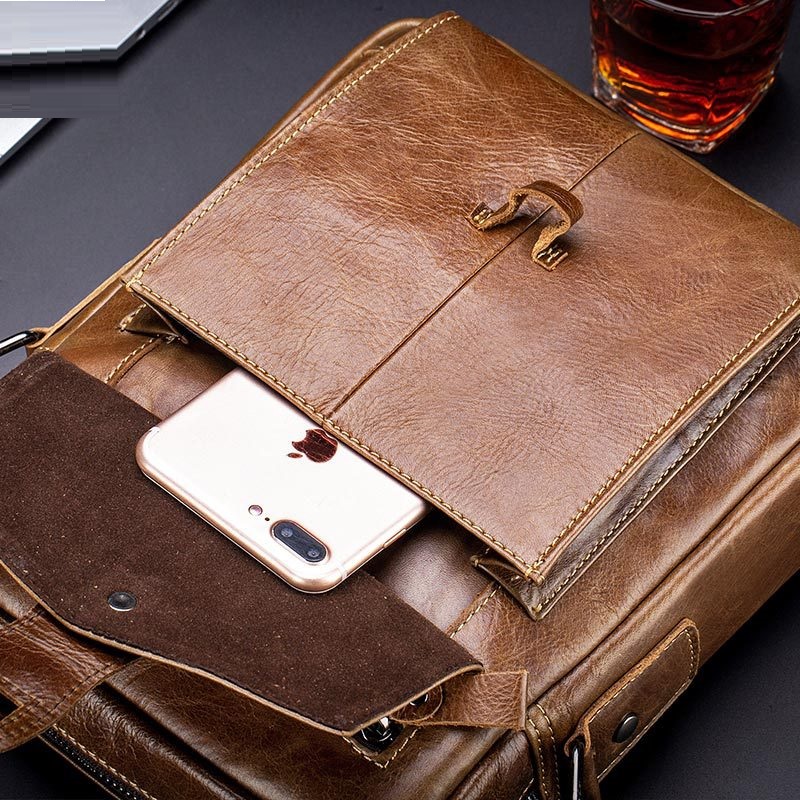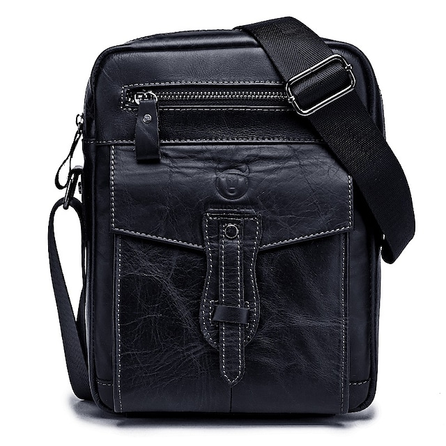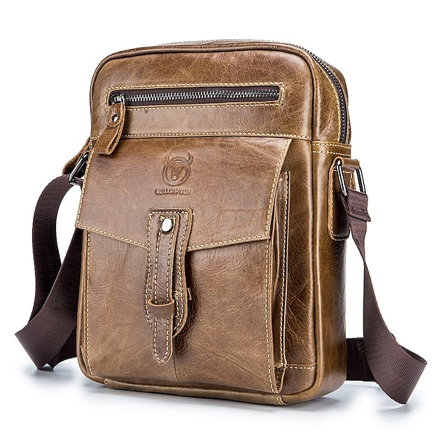 Men's Messenger Bag Shoulder Messenger Bag Crossbody Bag Cowhide Zipper Solid Color Daily Outdoor Black Brown Yellow