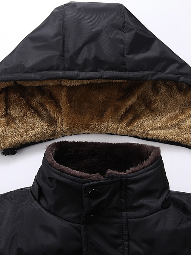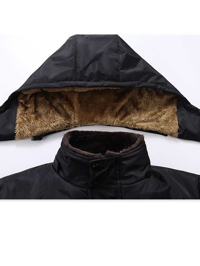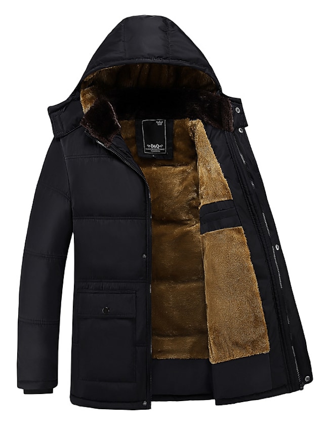 Men's Padded Long Coat Regular Fit Jacket Solid Colored Black / Plus Size / Plus Size
