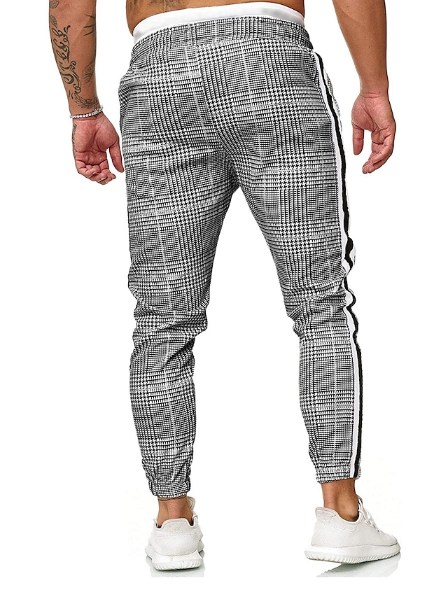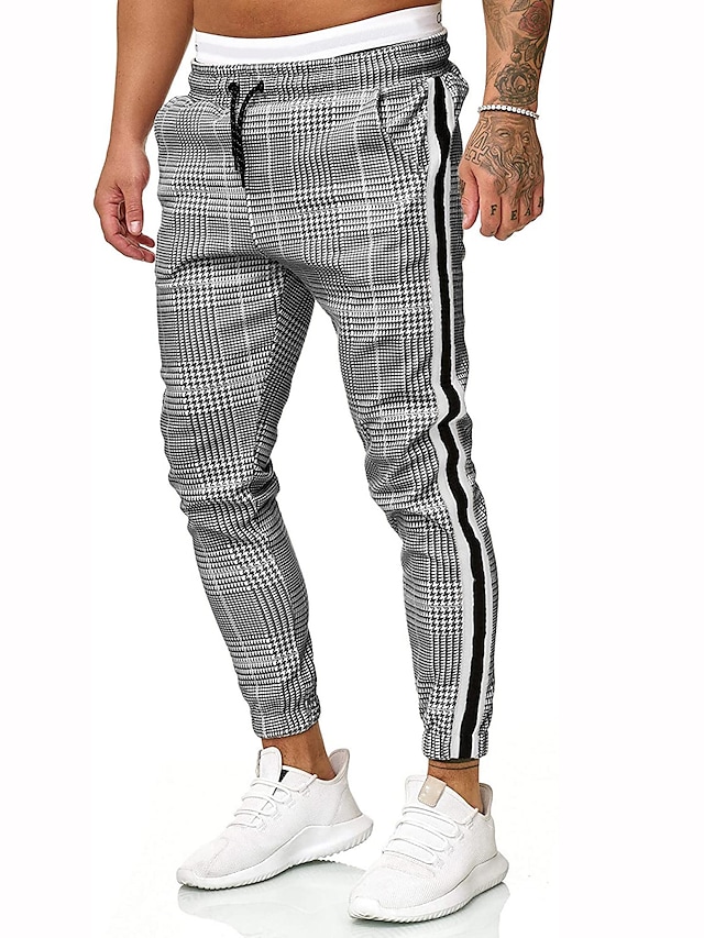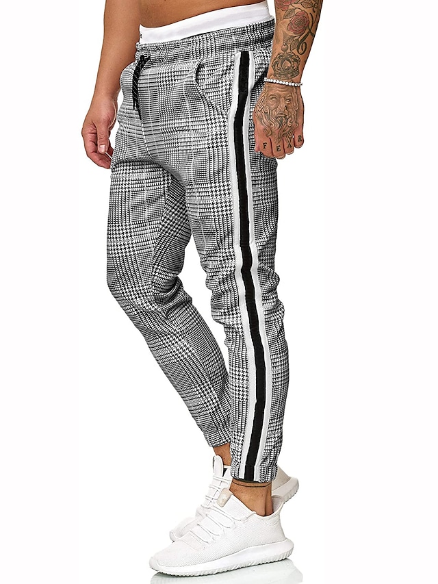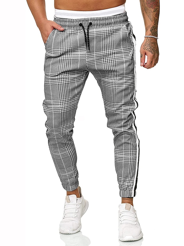 Men's Pants Chinos Drawstring Classic Lattice Outdoor Full Length Pants Home Daily Cotton Stylish Classic Style Slim Gray Micro-elastic / Summer