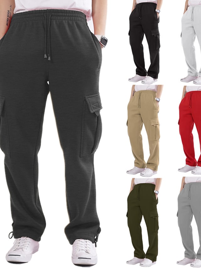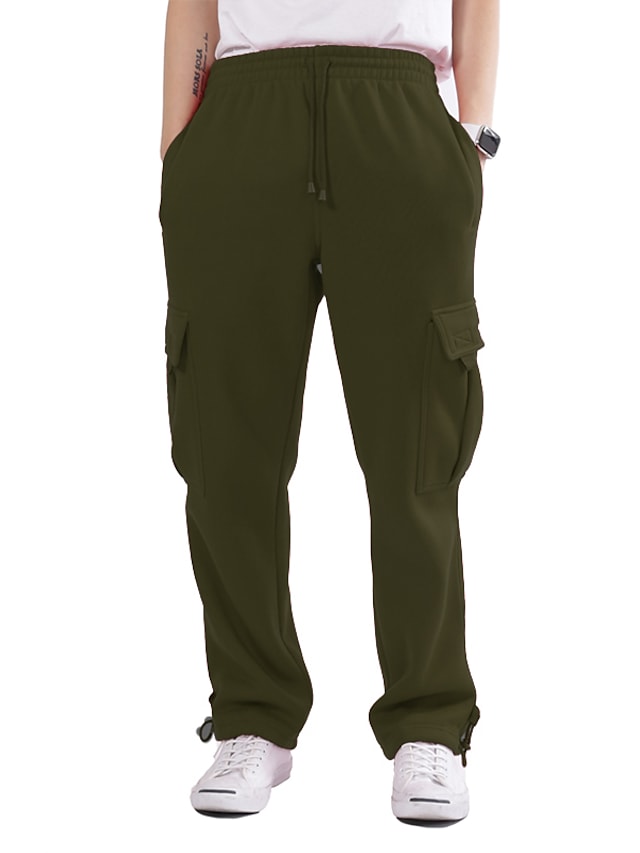 Men's Pants Trousers Pocket Sporty Leg Drawstring Solid Color Breathable Moisture Wicking Full Length Pants Casual Daily Cargo Sweatpants Loose Fit ArmyGreen White High Waist Micro-elastic / Winter