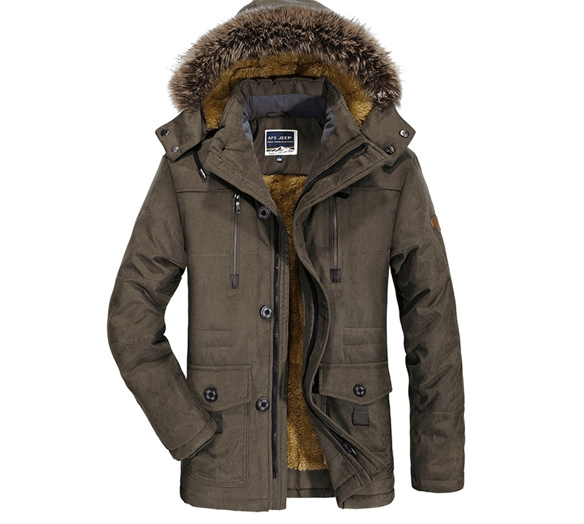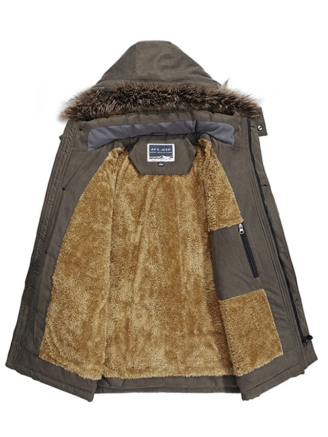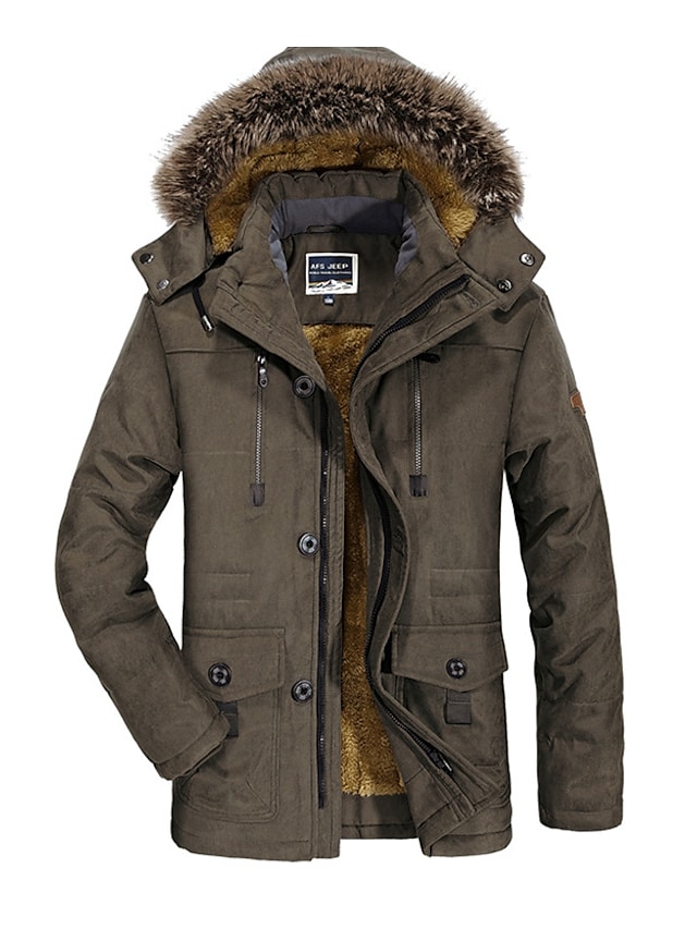 Men's Parka Parka Daily Solid Colored Polyester Long Sleeve Hooded Black / Army Green / Khaki L / XL / XXL