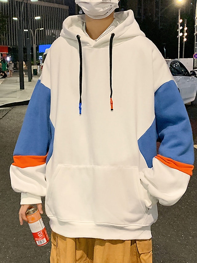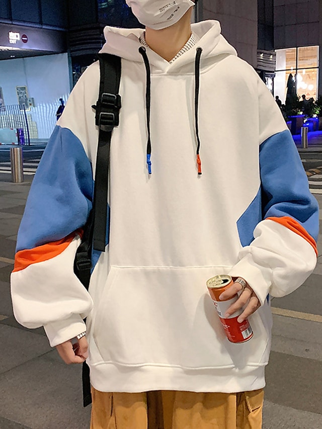 Men's Pullover Hoodie Sweatshirt Hooded Color Block Casual Daily Holiday Designer Sportswear Hoodies Sweatshirts Long Sleeve White Black / Spring / Fall