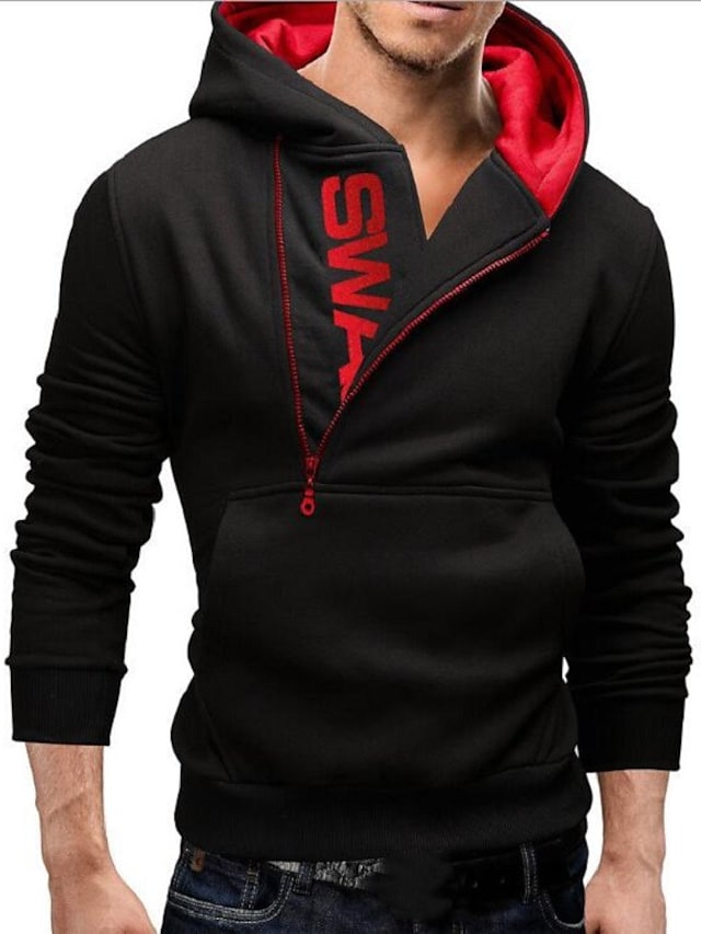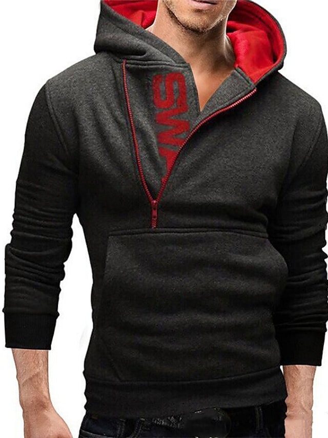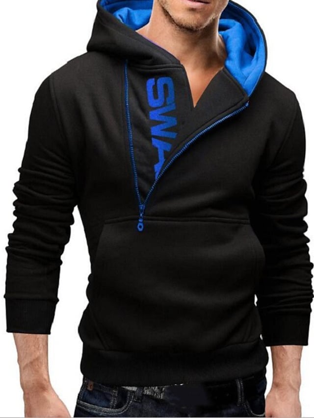 Men's Pullover Hoodie Sweatshirt Hooded Color Block Half Zip Daily Weekend Cotton Basic Sportswear Hoodies Sweatshirts Long Sleeve Black Blue / Winter / Fall / Winter