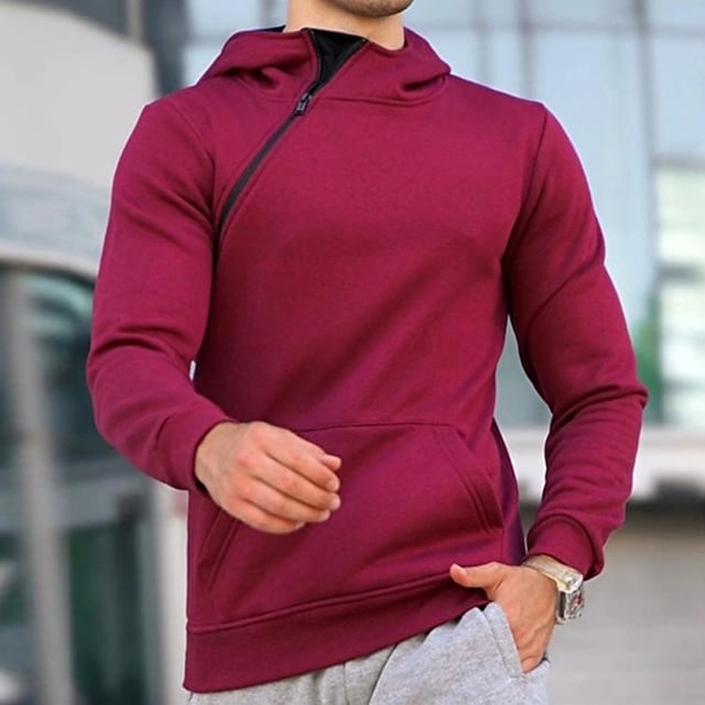 Men's Pullover Hoodie Sweatshirt Pullover Solid Color Front Pocket Quarter Zip Daily Holiday Going out non-printing Streetwear Casual Hoodies Sweatshirts Long Sleeve Wine Red Light Khaki.