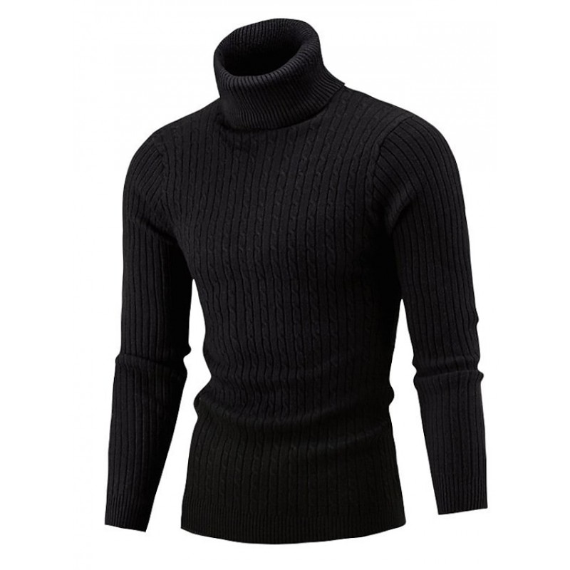 Men's Pullover Jumper Knit Retro Stylish Color Block Turtleneck Beaded Edge Sweaters Daily Holiday Winter White Black XS S M / Polyester / Elastic / Rib Fabrics / Long Sleeve / Machine wash