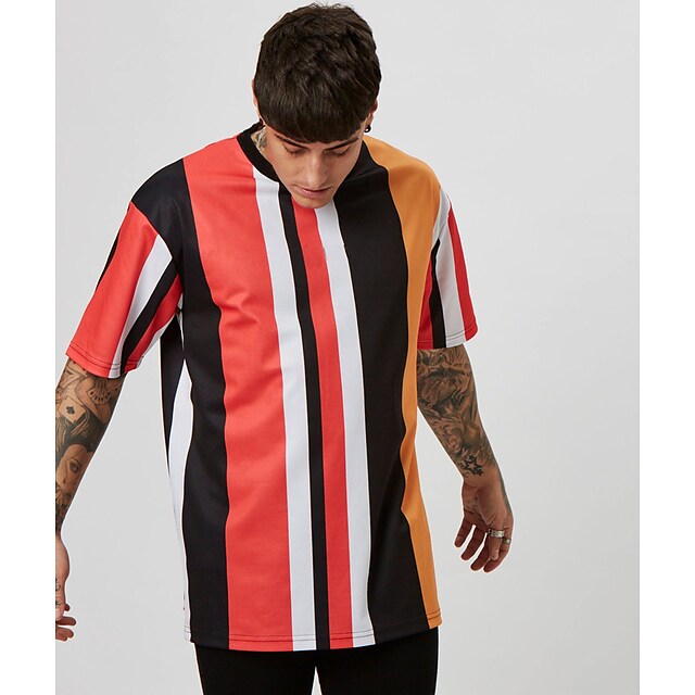 Men's Running Shirt Crew Neck Stripes Sport Athleisure Tee Tshirt Shirt Short Sleeve Breathable Moisture Wicking Soft Fitness Running Walking Jogging Exercise Athletic Athleisure Activewear