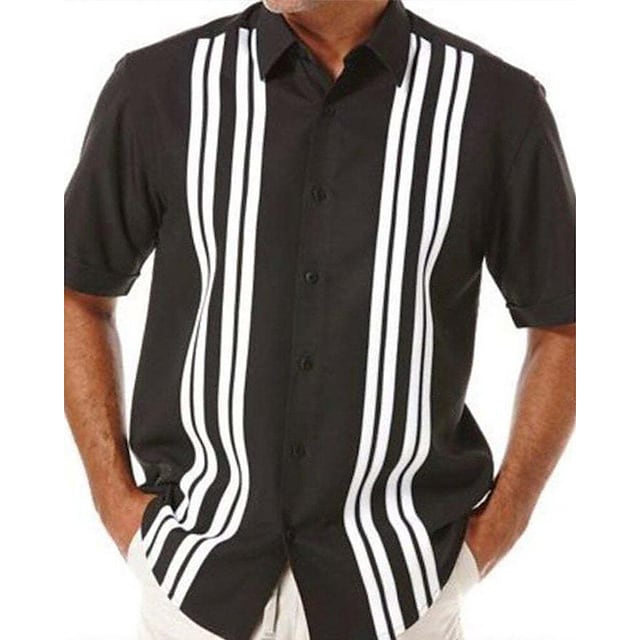 Men's Shirt Color Block Turndown Black / White Black / Gray Blue Brown Short Sleeve Street Daily Button-Down Tops Fashion Casual Comfortable / Summer / Spring / Summer / Beach