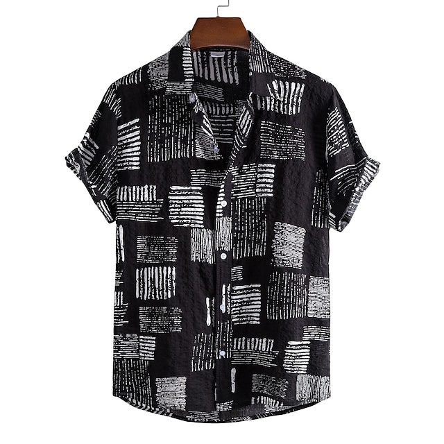 Men's Shirt Geometry Turndown White Black Short Sleeve Plus Size Holiday Print Tops 2pcs Beach / Summer / Summer