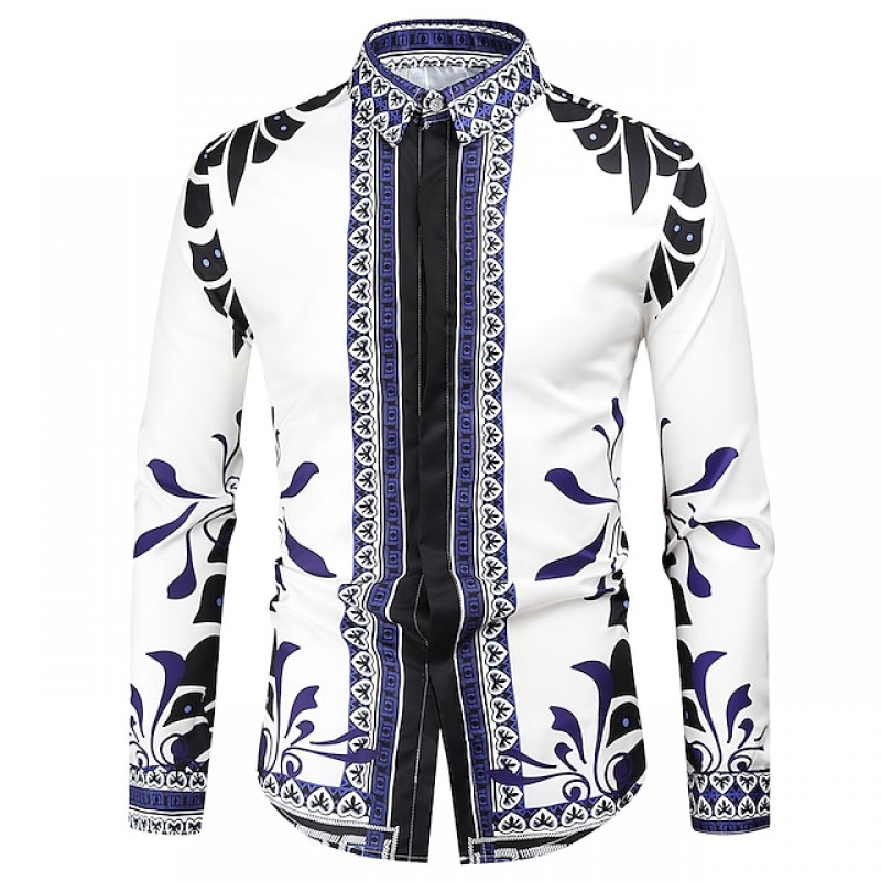 Men's Shirt Graphic Classic Collar White Long Sleeve Daily Holiday Tops Fashion Classic