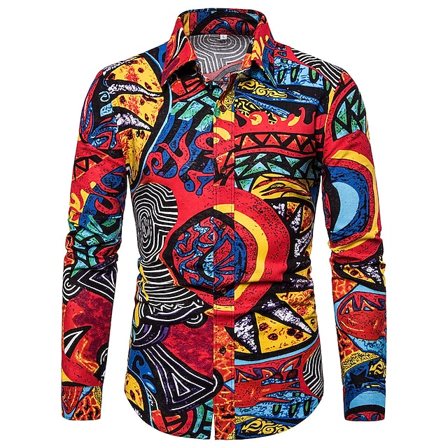 Men's Shirt Graphic Color Block Print Long Sleeve Regular Fit Fashion Tops Basic Purple Blushing Pink Wine