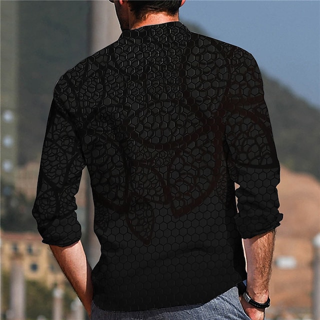 Men's Shirt Graphic Stand Collar Black Long Sleeve 3D Print Outdoor Casual Button-Down Print Tops Fashion Designer Casual Comfortable / Sports