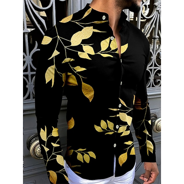 Men's Shirt Leaves Turndown Yellow Long Sleeve 3D Print Outdoor Street Button-Down Print Tops Fashion Casual Comfortable / Summer / Spring / Summer