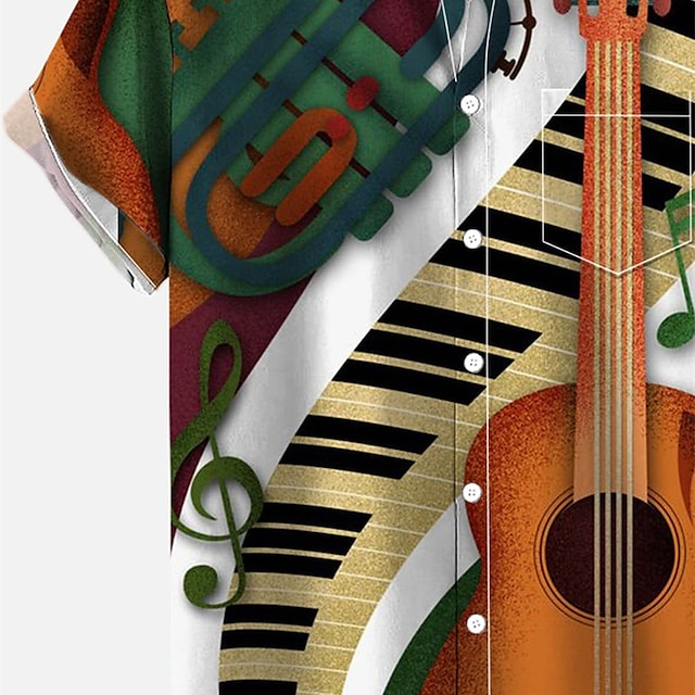 Men's Shirt Notes Turndown Rainbow Short Sleeve Print Casual Daily Button-Down Print Tops Fashion Casual / Summer / Summer