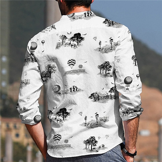 Men's Shirt Scenery Stand Collar White Long Sleeve 3D Print Outdoor Casual Button-Down Print Tops Fashion Designer Casual Comfortable / Sports