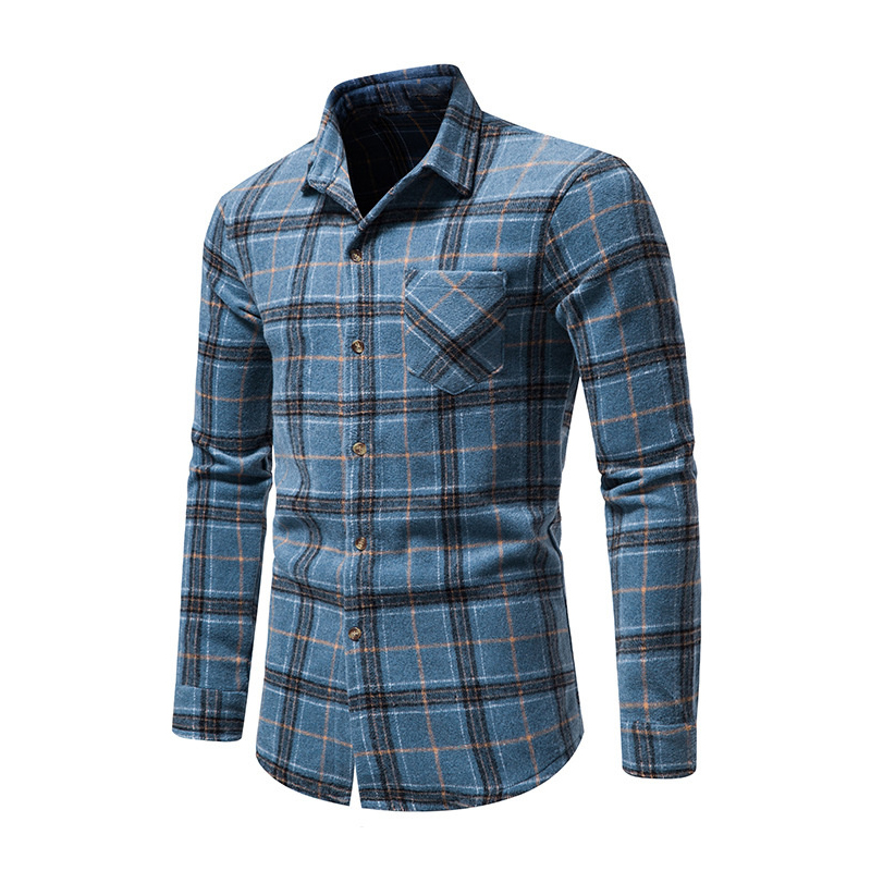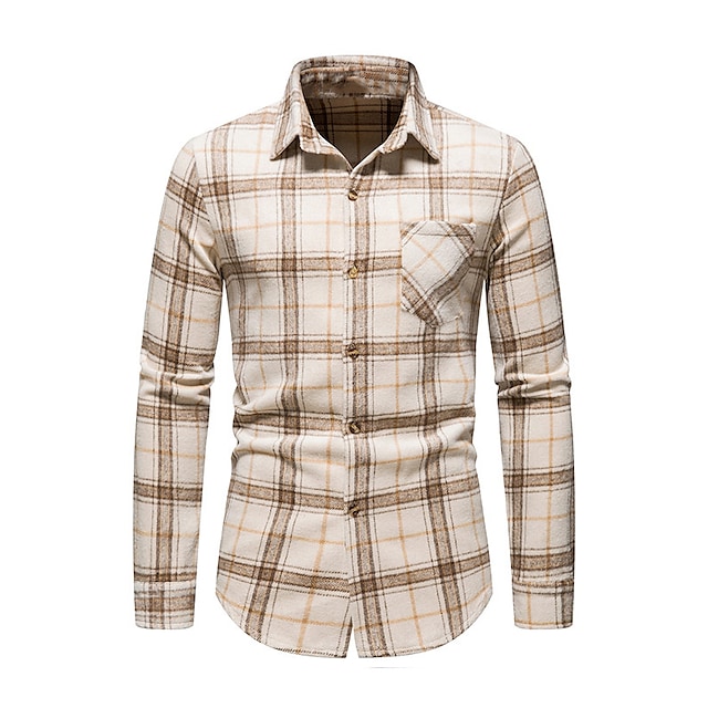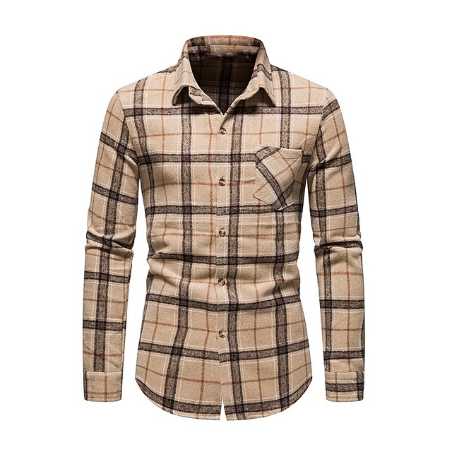 Men's Shirt Shirt Jacket Plaid Turndown Blue Light Brown Brown Long Sleeve Outdoor Street Button-Down Tops Fashion Casual Breathable Comfortable