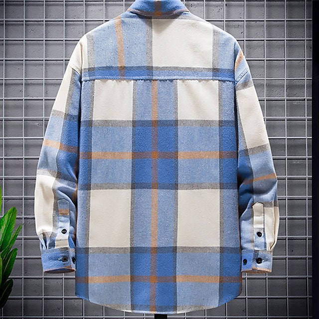 Men's Shirt Shirt Jacket Plaid Turndown Green Blue Yellow Red Long Sleeve Outdoor Street Button-Down Tops Fashion Streetwear Casual Comfortable / Summer / Spring / Summer