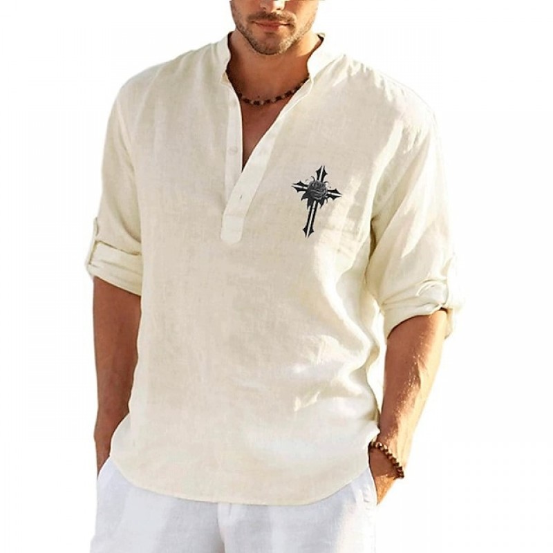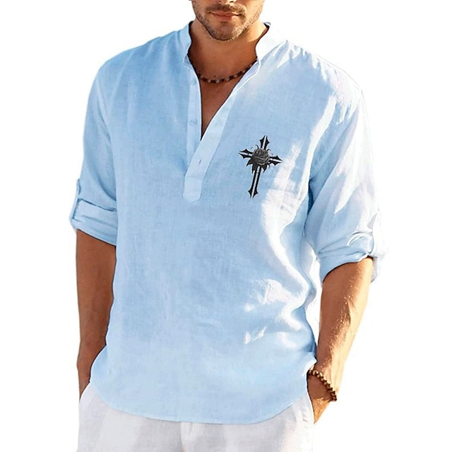 Men's Shirt Solid Color Cross Standing Collar Street Casual Button-Down Print Half Sleeve Tops Designer Casual Fashion Breathable White Black Gray / Summer