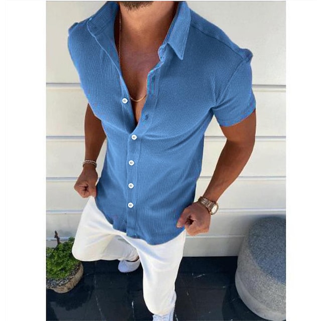 Men's Shirt Solid Color Turndown Street Casual Daily Button-Down Short Sleeve Tops Basic Comfortable Lightweight Summer Shirt Holiday Vacation Fashion Style