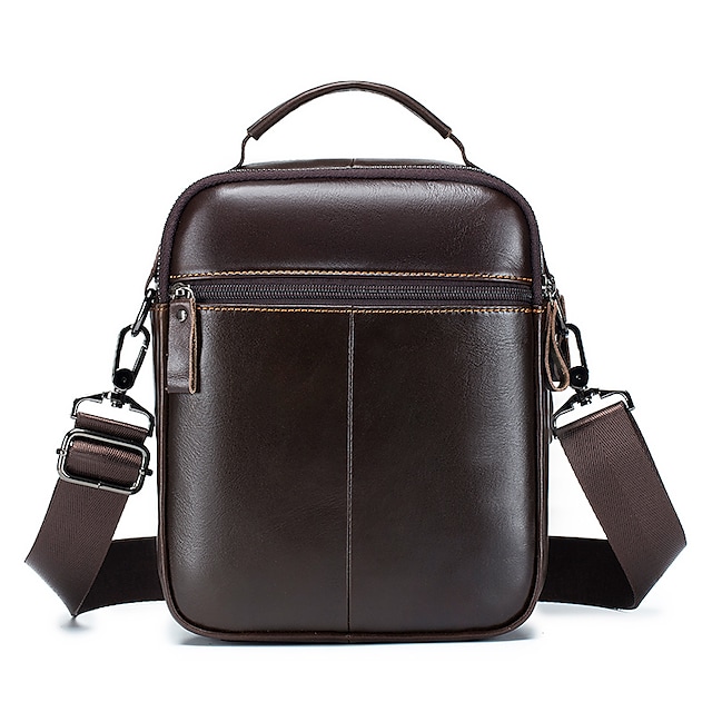 Men's Sling Bags Crossbody Bag Nappa Leather Zipper Solid Color Daily Office & Career Coffee
