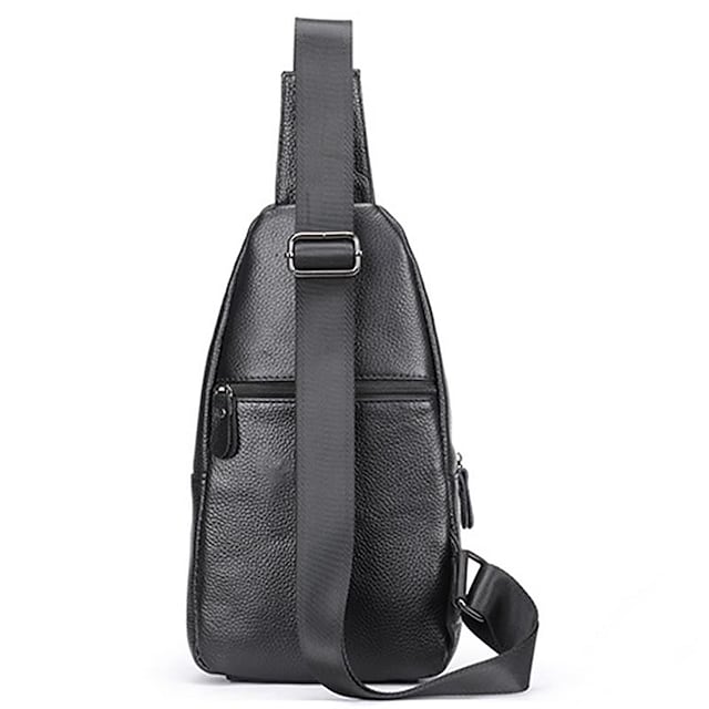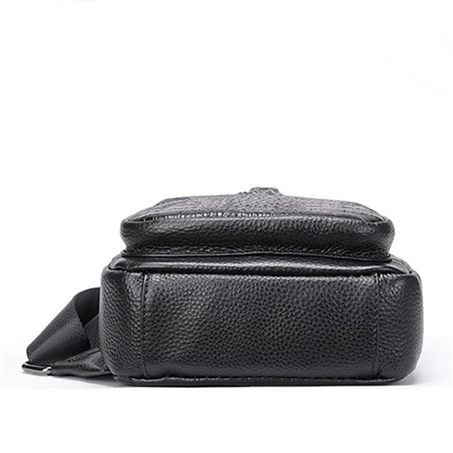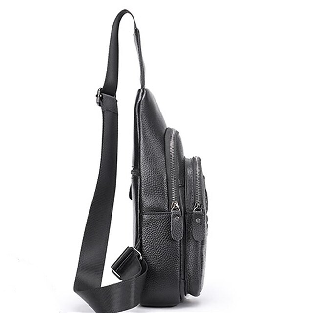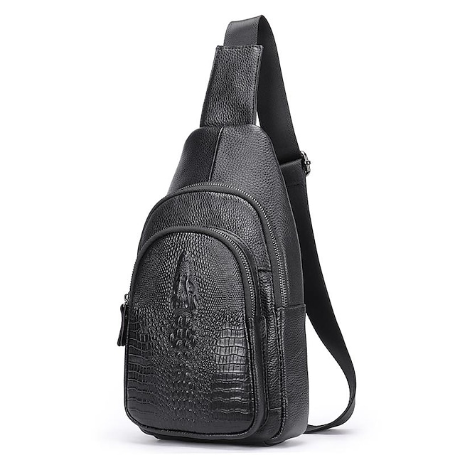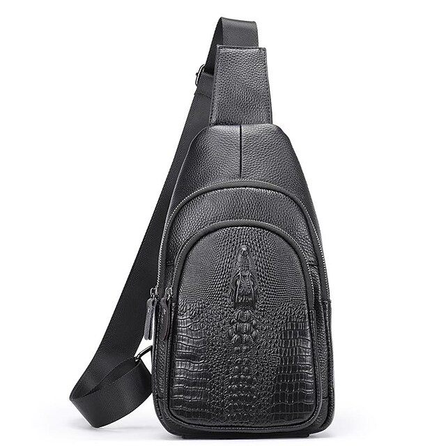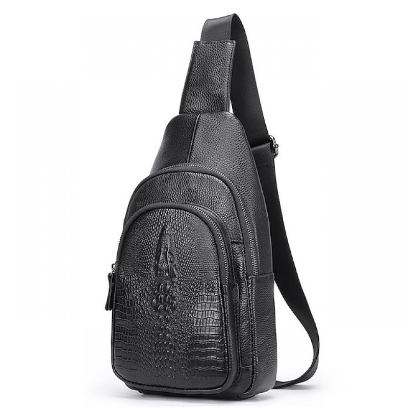 Men's Sling Shoulder Bag Nappa Leather Cowhide Zipper Crocodile Daily Black