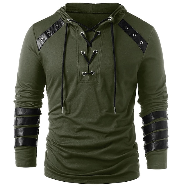 Men's Solid Color non-printing Casual Daily Hoodies Sweatshirts ArmyGreen Black Gray Lace Up Pullover Tops