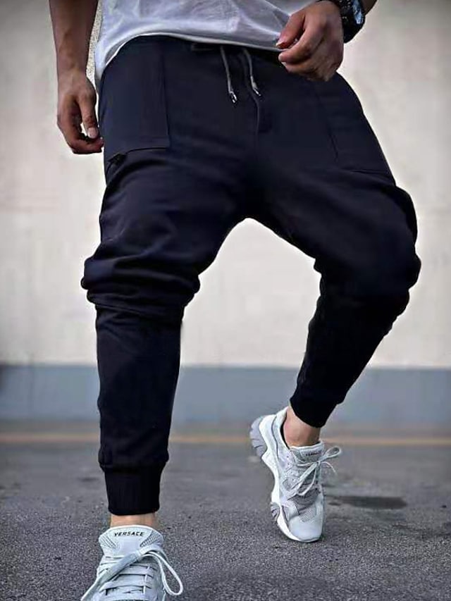 Men's Straight Chinos Zipper Pocket Chinese Style Outdoor Sports Full Length Pants Casual Daily Simple Casual Loose Fit Black Light Grey Micro-elastic / Winter / Drawstring