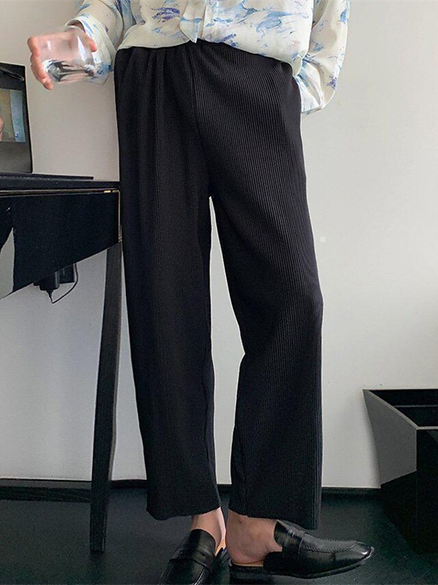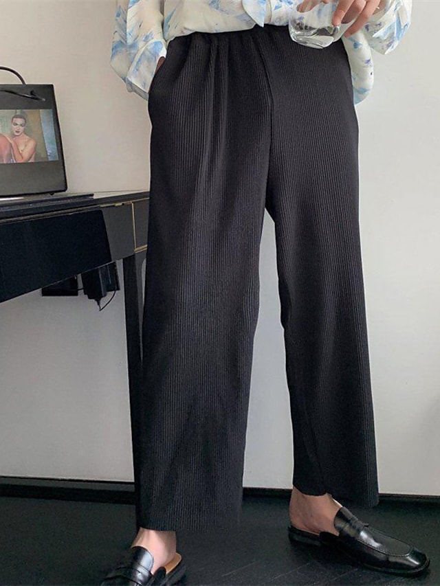 Men's Straight Sweatpants Trousers Elastic Waist Solid Color Comfort Breathable Pants Casual Daily Cotton Blend Sports Fashion Black Micro-elastic / Elasticity