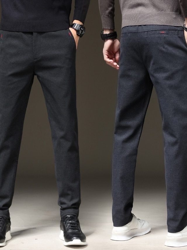 Men's Straight Trousers Casual Pants Pocket Solid Color Comfort Breathable Pants Casual Daily Cotton Blend Stylish Simple Black Blue Micro-elastic