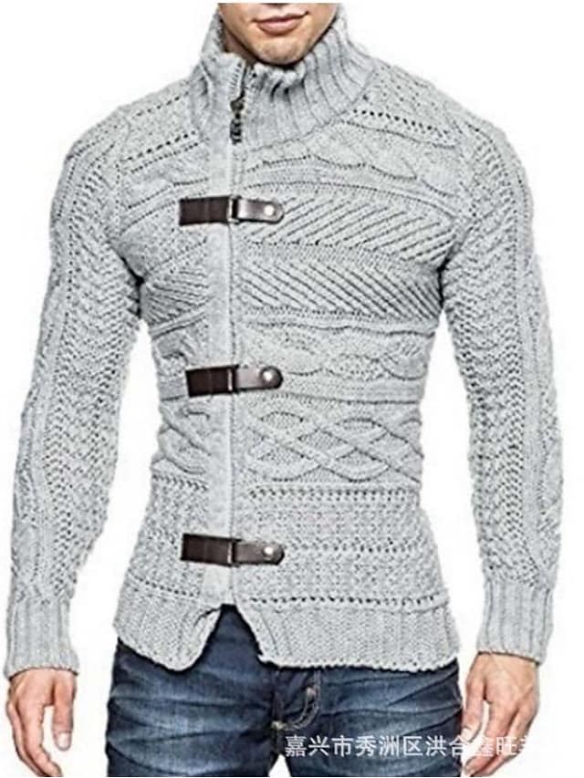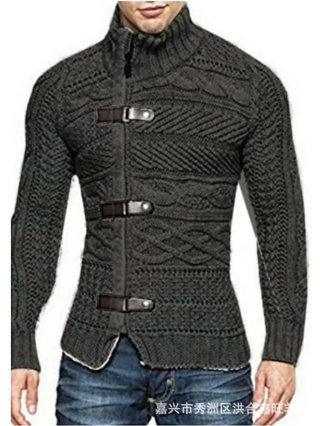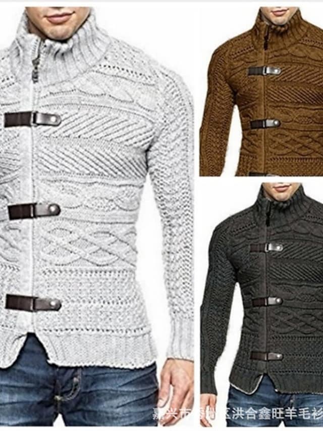 Men's Sweater Cardigan Jumper Knit Knitted Button Solid Color Stand Collar Stylish Vintage Style Fall Winter White Black S M L / Long Sleeve / Turtleneck / Long Sleeve / Geometric