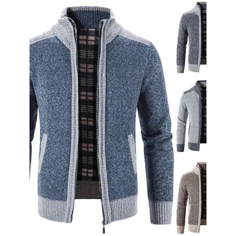 Men's Sweater Cardigan Jumper Knit Knitted Color Block Shirt Collar Stylish Casual Sport Daily Fall Winter Blue Light gray M L XL / Long Sleeve / Long Sleeve