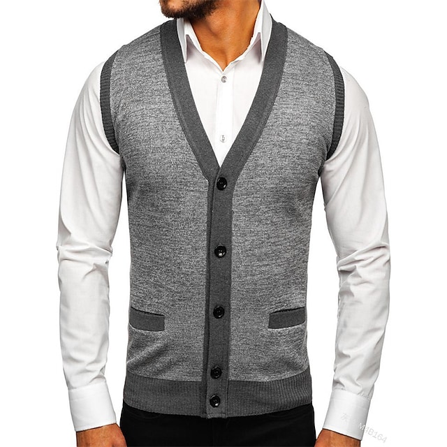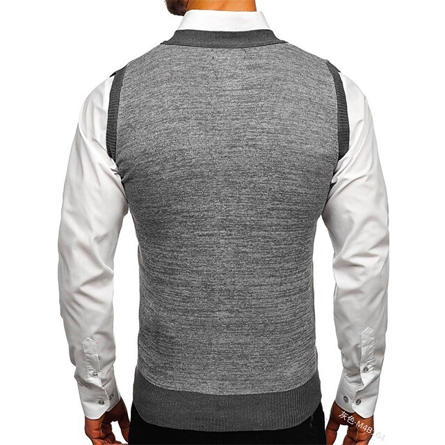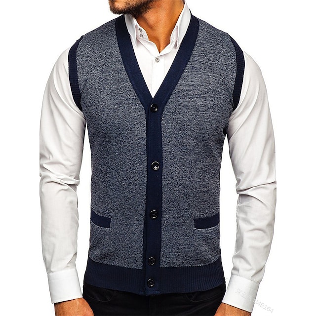 Men's Sweater Vest Jumper Ribbed Knit Cropped Knitted Color Block V Neck Stylish Basic Daily Holiday Fall Winter Green Black M L XL / Cotton / Sleeveless