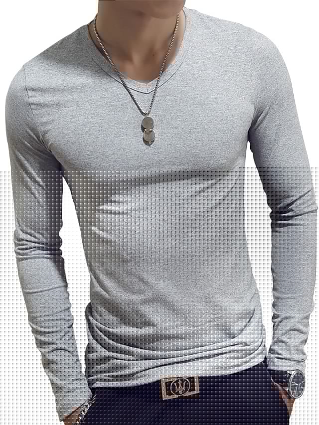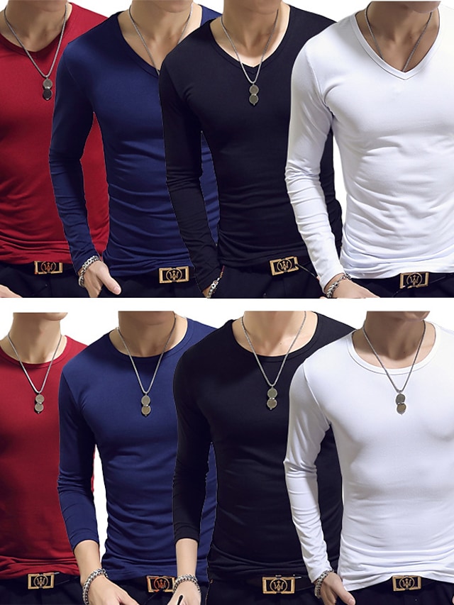 Men's T shirt Tee Shirt Tee Graphic Solid Colored V Neck White Black Wine Army Green Navy Blue Long Sleeve Plus Size Daily Weekend Slim Tops Basic Designer Muscle Big and Tall / Spring / Fall