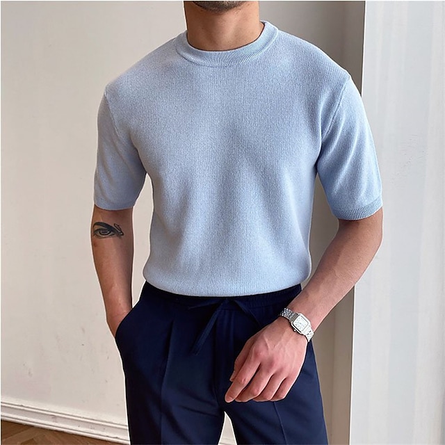 Men's T shirt Tee Solid Color Crew Neck Light Blue Half Sleeve Street Daily Tops Fashion Casual Comfortable / Beach