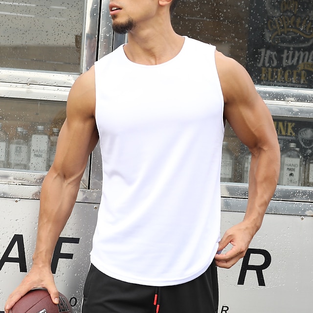 Men's Tank Top Tee / T-shirt Pure Color Crew Neck Solid Color Sport Athleisure Shirt Sleeveless Breathable Quick Dry Soft Sweat Out Yoga Tennis Exercise & Fitness Running Walking Training Casual