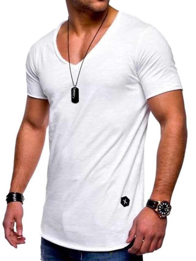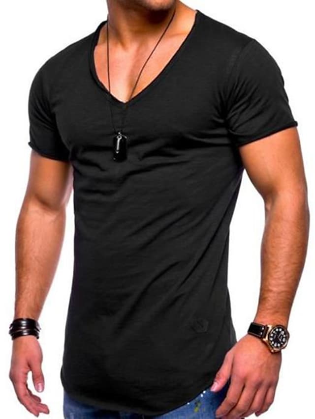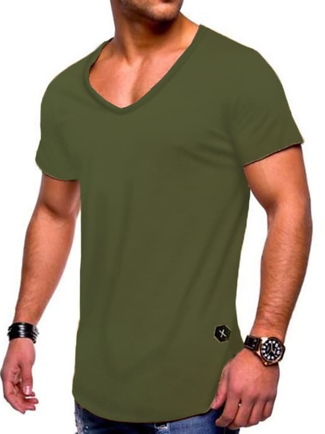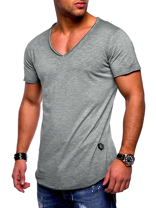 men's tee short sleeved basic t-shirt v-neck neckline gym oversize look casual sportwear solid color slim fit t shirt