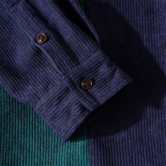 Men's Thick Shirt Shirt Jacket Color Block Turndown Navy Blue Long Sleeve Daily Vacation Button-Down Tops Fashion Casual Comfortable / Winter / Fall / Winter