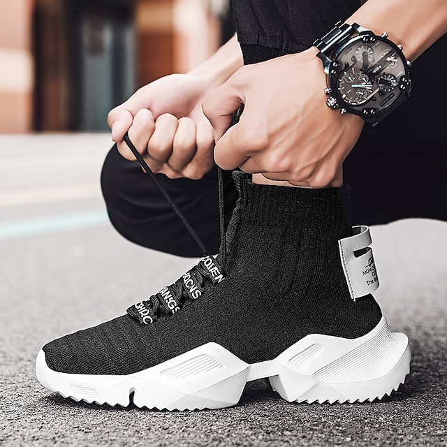Men's Trainers Athletic Shoes Sporty Casual Daily Outdoor Running Shoes Fitness & Cross Training Shoes Tissage Volant Breathable Wear Proof Black and White White Black Fall Summer