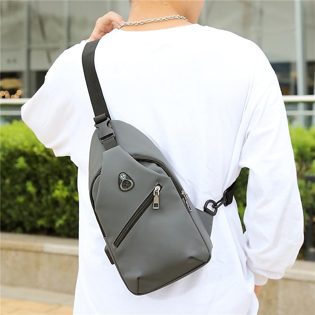 Men's Unisex Sling Shoulder Bag Oxford Cloth Zipper Solid Color Floral Print Daily Office & Career Black Blue Grey