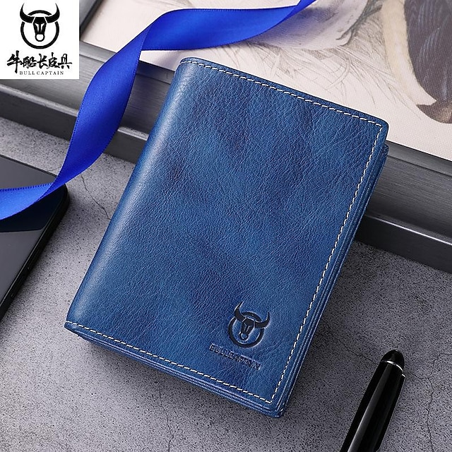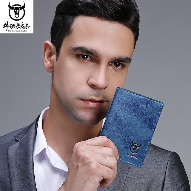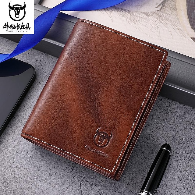 Men's Wallet Cowhide Zipper Solid Color