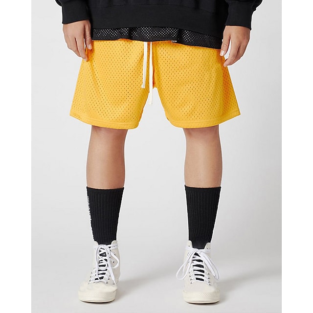 Mesh Shorts Bottoms Drawstring Men's Fitness for Basketball Running Workout Jogging Breathable Quick Dry Moisture Absorbent Normal Sport Solid Colored White Black Red Yellow Grey