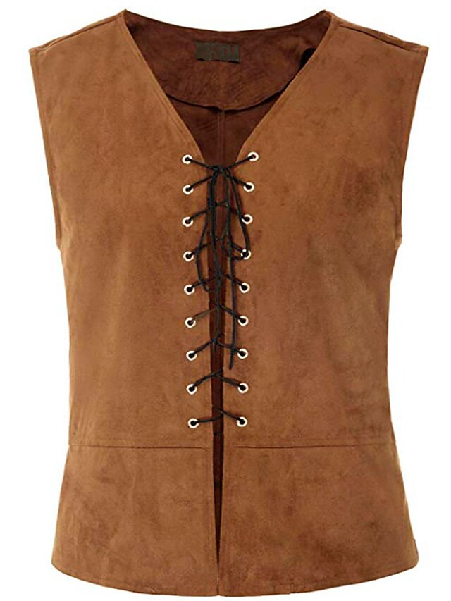 vintage medieval men vest laced up renaissance sleeveless waistcoat gothic steampunk tank top khaki